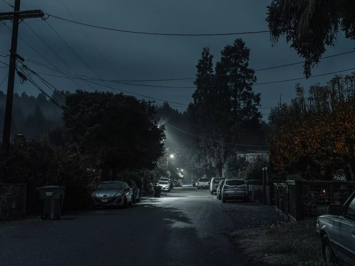 “Working only with the predetermined light of city planners, business and home owners, the work reveals how the transactional light of security and safety can transcend into the fantastic and the extraordinary,” Davenport writes in his artist’s statement.