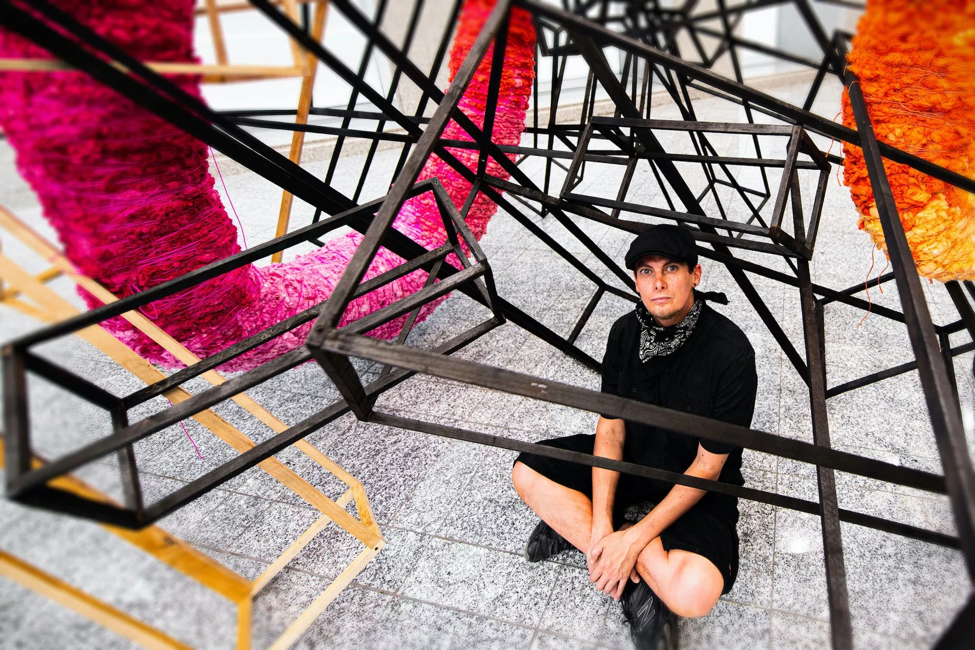 Colorado native Scottie Burgess has the versatility of a polymath, with interests in music engineering and creative design, but he has settled into a bold sculpture-installation practice utilizing mixed new and recycled materials. A member of the Pirate cooperative, Burgess builds ties within the local and national artist communities while venturing professionally into the realm of public art. Burgess’s most recent unveilings include a sculpture in a secret backyard exhibition and a public installation now on view at Republic Plaza in downtown Denver.