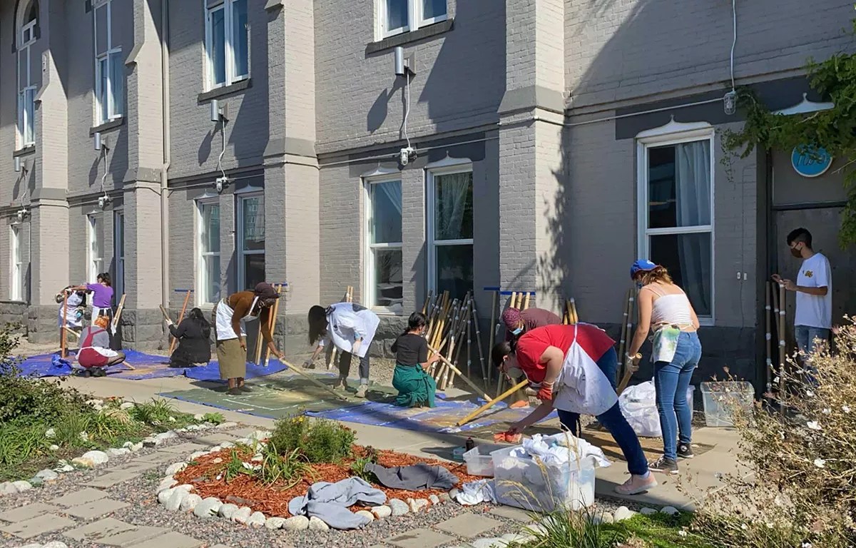 Autumn T. Thomas and PlatteForum ArtLab interns preparing for install day.
