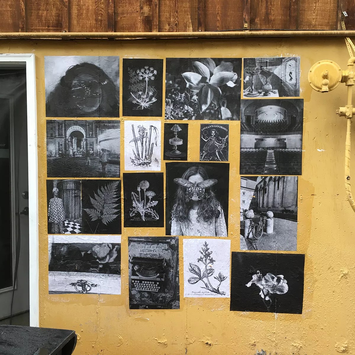 A small community wheat-paste piece that Sharifa Moore put up on the side of Vivian’s Gourmet in Evergreen, featuring the work of Kellie Smith and Emily Owens.