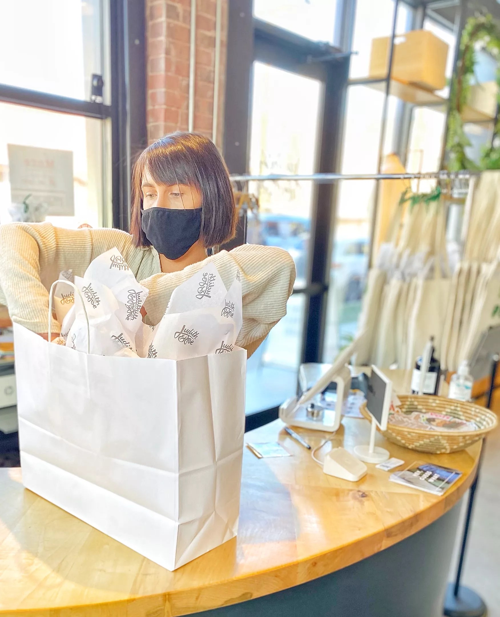 Brandee Castle: At its heart, Judith & Joe has always strived for ethical sustainability. We focus on low waste and local designers whenever we can. But we’re also about treating people ethically. We want to be fair to our employees and be good stewards of their time. And we do it all with style, of course. This explains the beautiful piece on the wall that says “STYLE. PEOPLE. PLANET.”