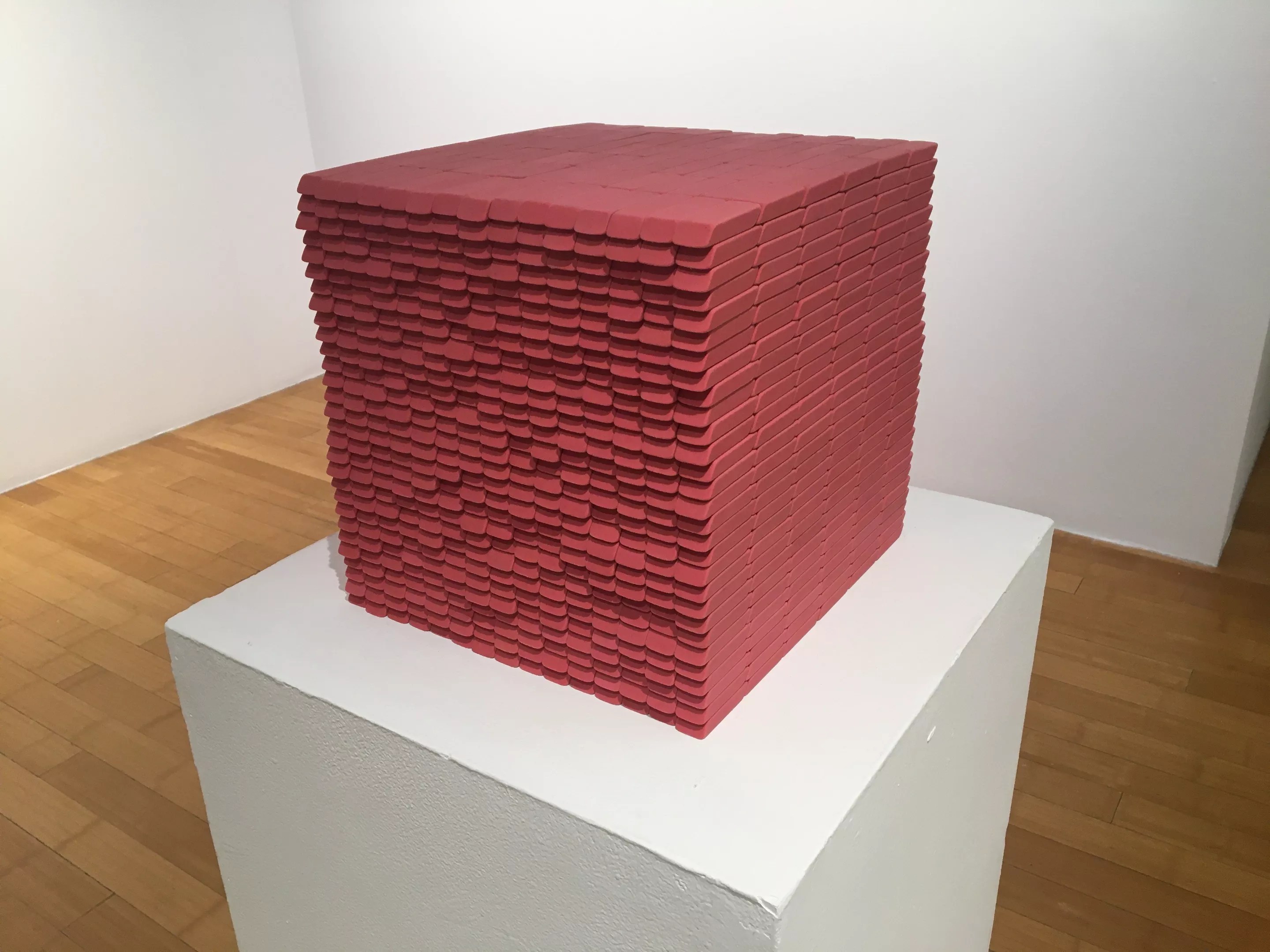 Joel Swanson’s “How Many Pink Pearl Erasers Would It Take to Create a Perfect Cube?”