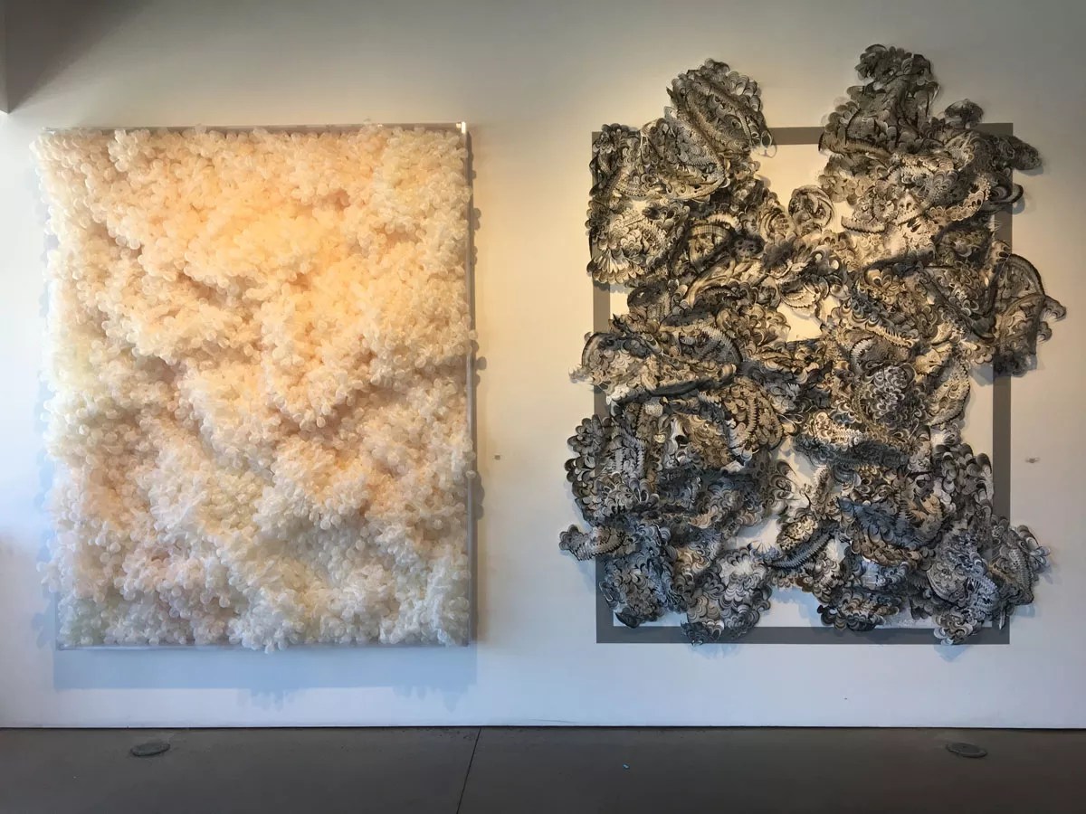 Bas-reliefs made of woven fibers by Wendy Kowynia.