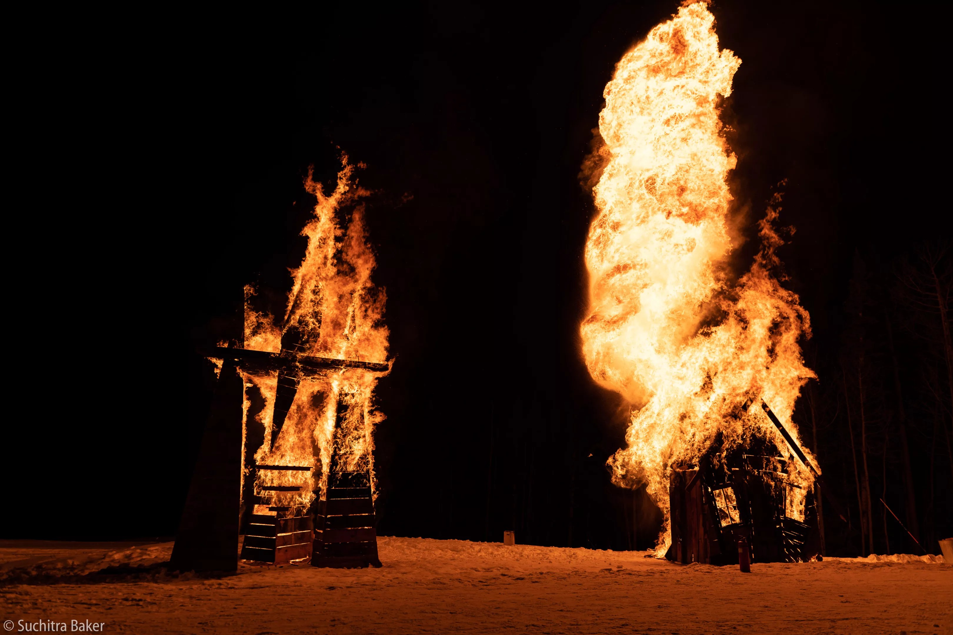It was still a success, however, and there were no reported COVID cases to come out of the festival. “We had fabulous fire art and a big sculpture burn, and we had flow arts classes outside with people in masks,” she adds.