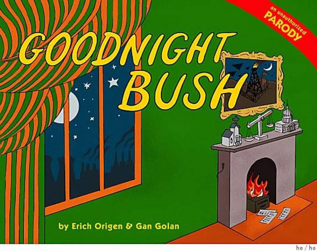 Let’s start with one of the most famous examples of its kind: the Goodnight Moon parody written in response to the disasters of the Bush Two political era. Written by former employees of Bush-era Secretary of Defense Donald Rumsfeld, the book used the original’s rhyme scheme, color palette, and even the same ink and paper stock, and turned the bedtime story into a “traumedy” of torture policy, Hurricane Katrina response, 9/11, and war profiteering. It closed the chapter on the Bush era with a goodnight to “failures everywhere.”