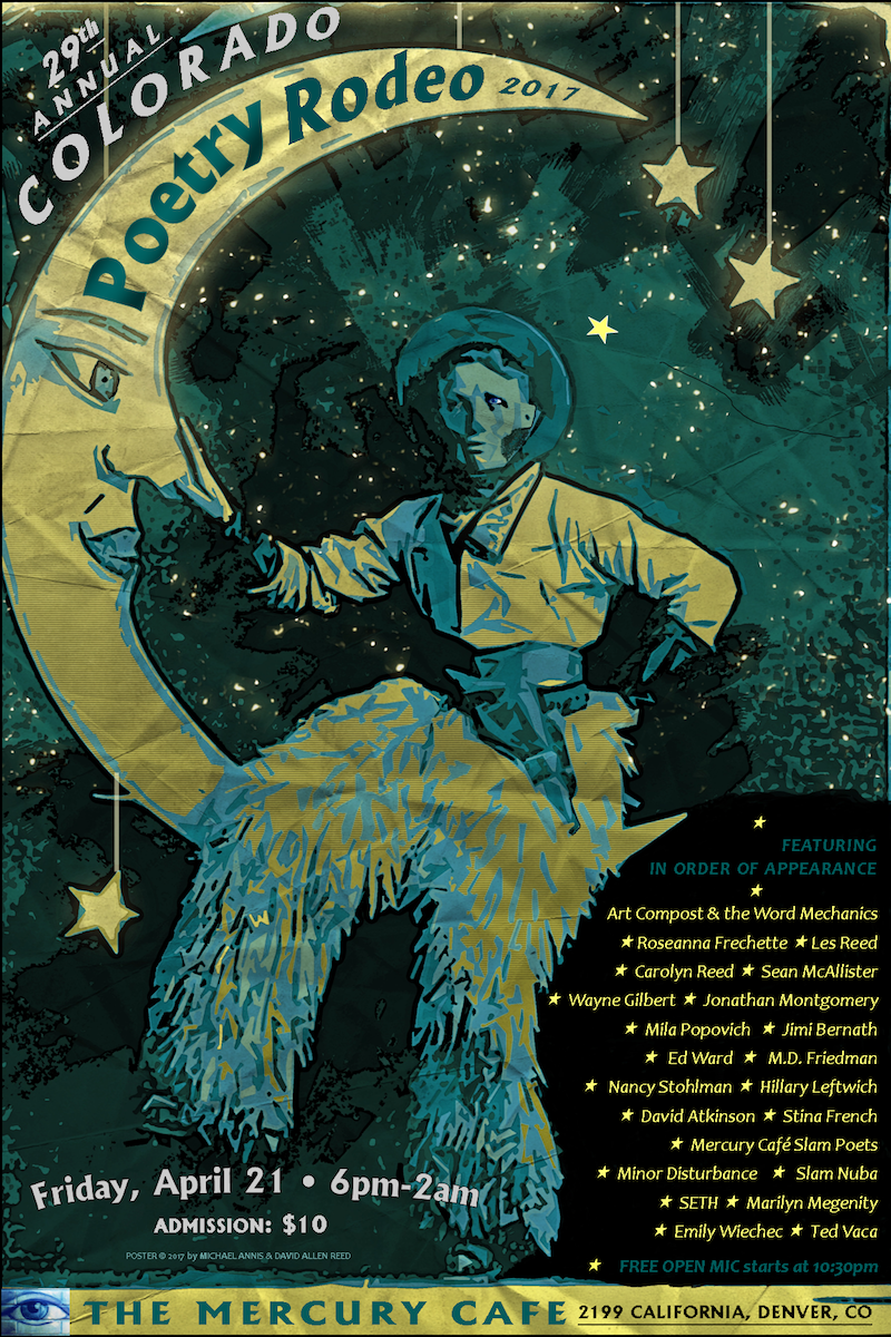 Wrangle up some fine imagery at the 29th Annual Colorado Poetry Rodeo, which uncoils like a dusty lasso from 6 p.m. to 2 a.m. on Friday, April 21. With readings from a selection of the region’s best poets, flash fiction readings, even elements of music and dance, the “Podeo” has evolved over the years to encompass a broad spectrum of spoken-word performance art. A multi-layered celebration, Podeo marks the culmination of National Poetry Month, honors the supporters who’ve kept it going, and enchants a new generation of poets – who are invited to perform during the open mic at 10:30 p.m. Admission is $10.
