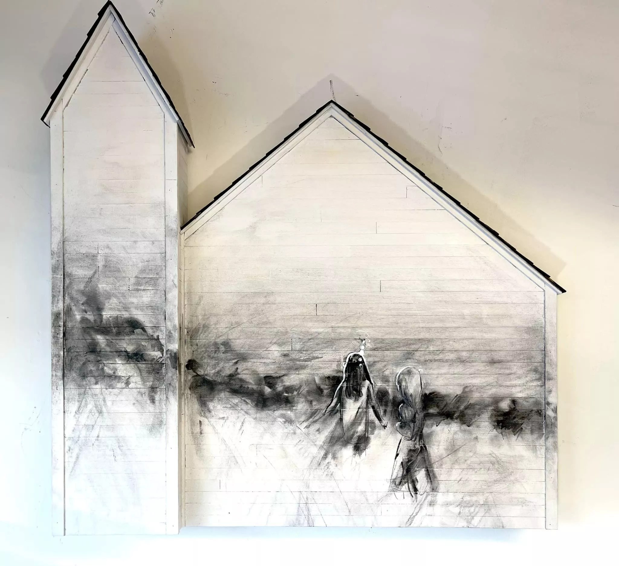 Josh Davy, “Slowly Fades Away,” 2023, mixed media on wood.