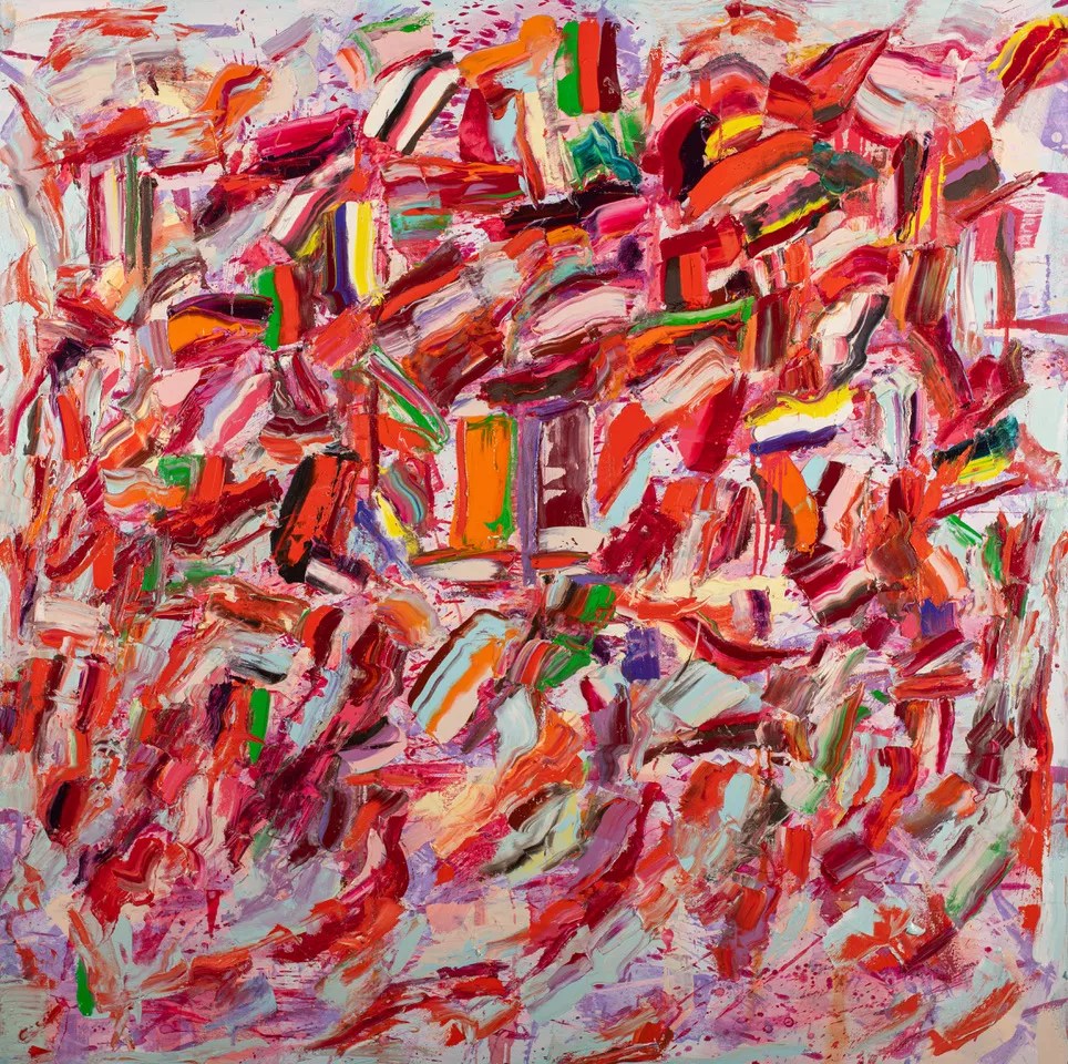 Monroe Hodder, “Smashing Roses,” oil over acrylic on canvas.