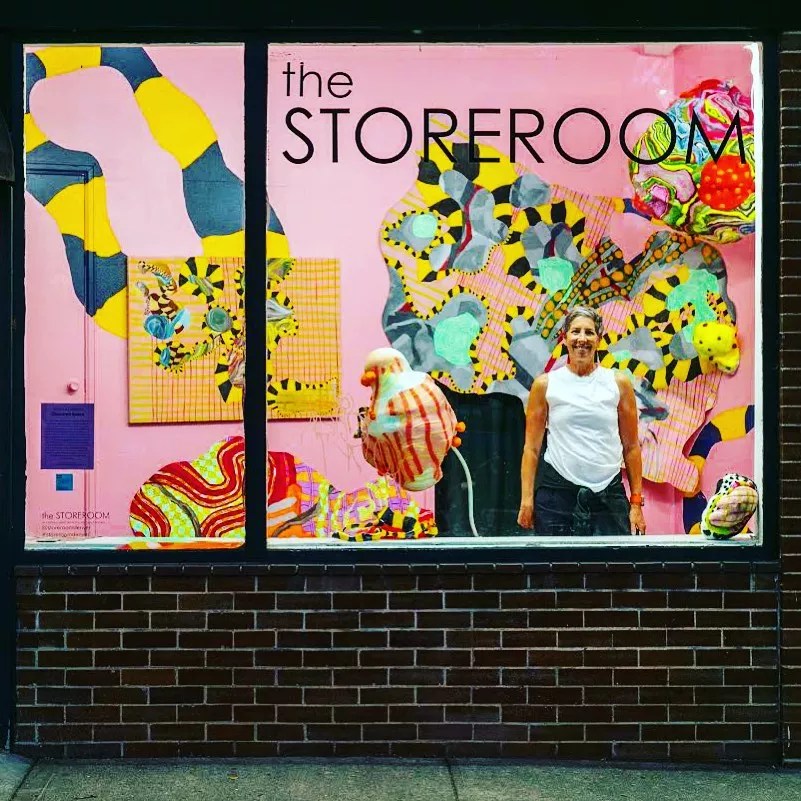 Andrea Gordon’s installation Obscured Space will remain on view through Halloween, and it’s a treat. From the sidewalk, the picture window of the Storeroom comes to life in electric Yellow Submarine hues, creeping and crawling in patterns around the walls. Gordon calls it a “multi-dimensional painting” in which all of its diverging shapes and colors somehow connect in singularity. Drop by and see what you think.