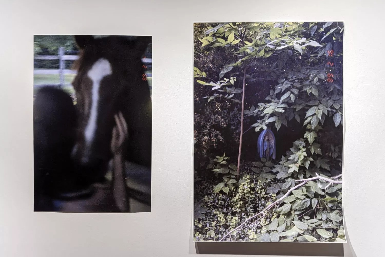 Left, John Lake, “Katie With Horse,” 2022, archival inkjet. Right, John Lake, “Mary in the Garden,” 2022, archival inkjet canvas.