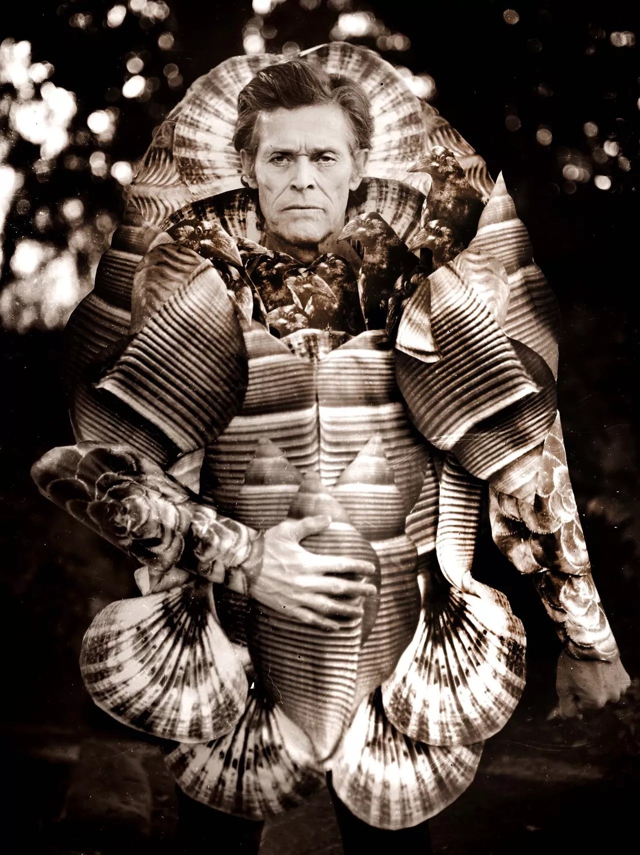 Willem Defoe dons paper armor in Michael Garlington’s photo, on display at Processus.