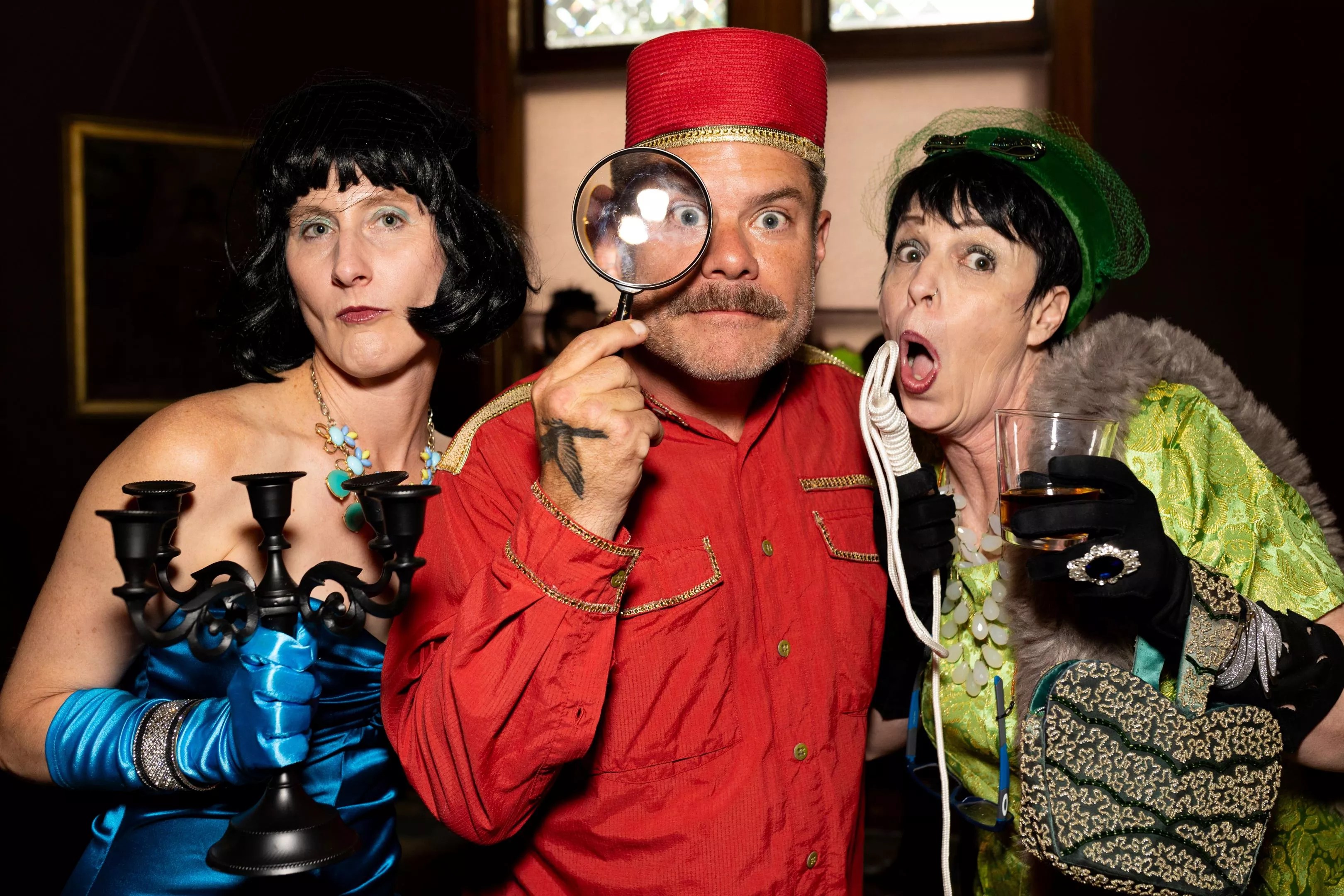 Andy Scahill (center) at the Rainbow Cult CLUE event earlier this year. Jo Besso (R) and Steph Mango (L) were the winners of the costume contest at the event.