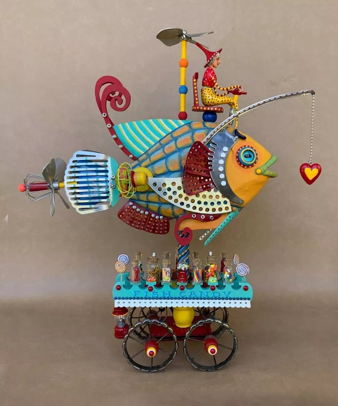 Plinth Gallery hosts a beautiful show of new work by ceramic artist Trudy Chiddix, who embellishes her folk-art-inspired hand series with metal flames and words of encouragement to pandemic first responders and hospital workers. Alongside the hands, Chiddix adds elaborately decorated vases in kimono forms with added fused-glass elements, as well as whirl-winding figures, standing disks and lamp-like works lit from within.