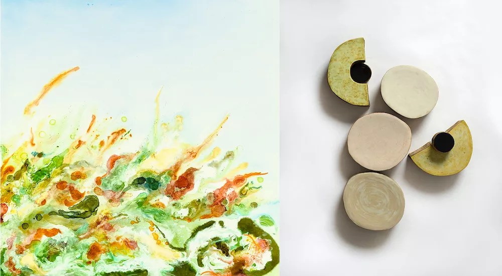 D’art member artists Gabrielle Shannon and Jean Smith share the Main Gallery with a complementary exhibition of abstract paintings inspired by nature, and wall arrangements and columns of clay shapes reminiscent of stone cairns. Shared Spaces, in the East Gallery, doubles as a benefit for the Virginia Wood Fund for Artists in Need and Darlene Kuhne Charity.