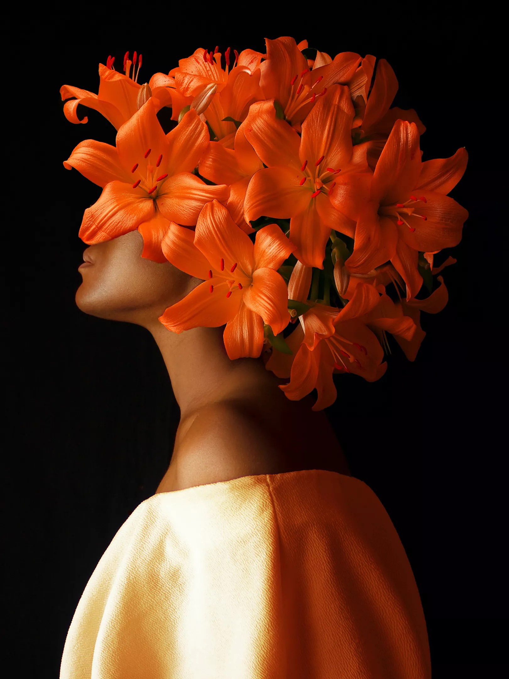 Dreams in Bloom, a flowery photography show, upholds the intersection of subject and medium that celebrates both the reopening of the Freyer-Newman Center galleries at the gardens and the biennial arrival of Month of Photography. Micue’s gorgeous portraits festoon human figures with bright blooms as a metaphor for the blossoming of human potential.