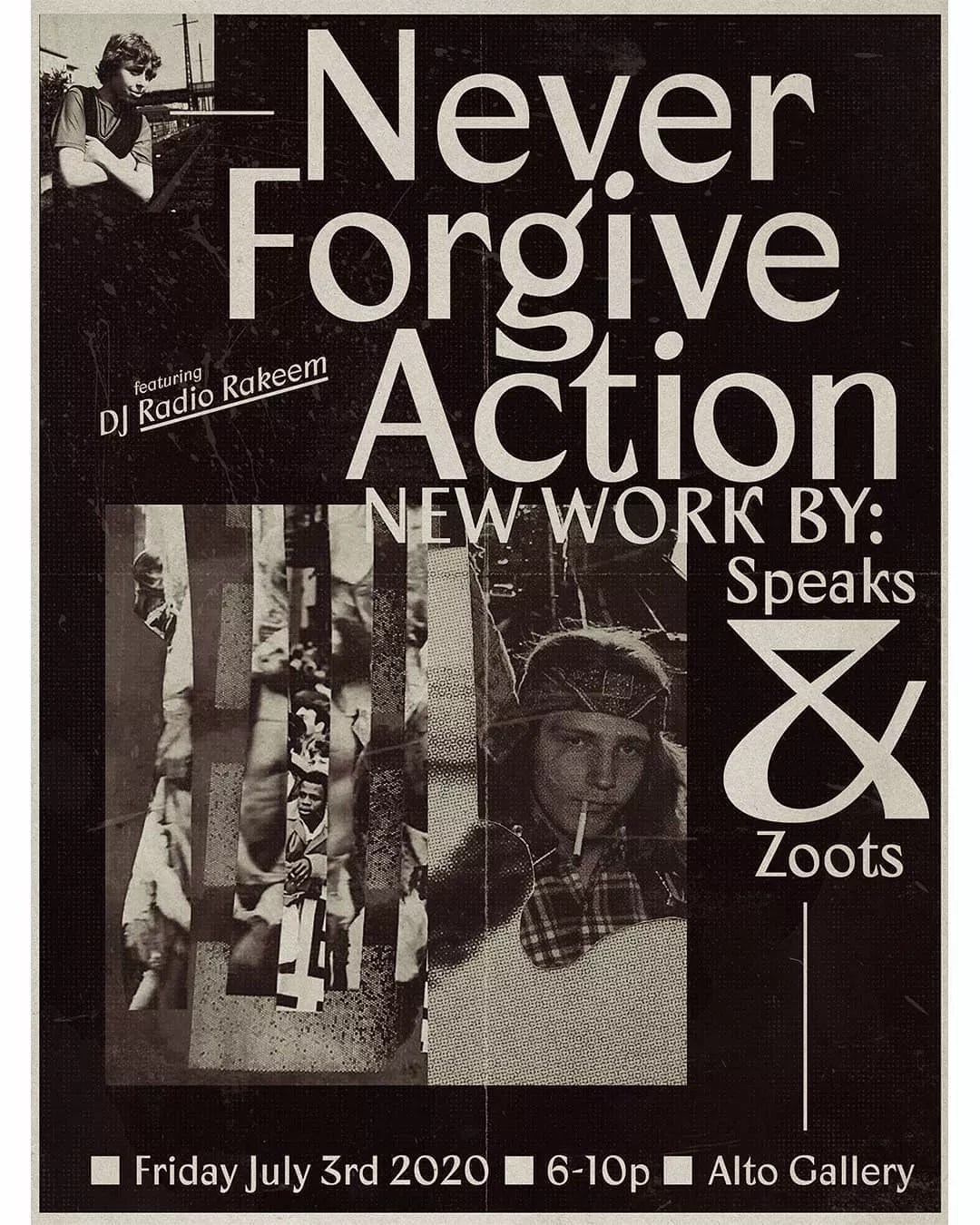 Alto hosts the duo of street artist Speaks and collagist Mario Zoots for a show of collage works inspired by the 1983 documentary Style Wars, about the long-ago battle between graffiti writers and Mayor Ed Koch in New York City. The pair’s works explore how the idea of “Never Forgive Action” addresses current events, at a time when graffitists are standing up to police violence and racism through art. Alto will enforce social distancing, masks and other pandemic protocols, but liquid refreshments and DJ Radio Rakeem will raise the bar for fun.