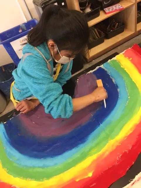 DAVA youth artist Roxana paints a rainbow for Re-Emergence.