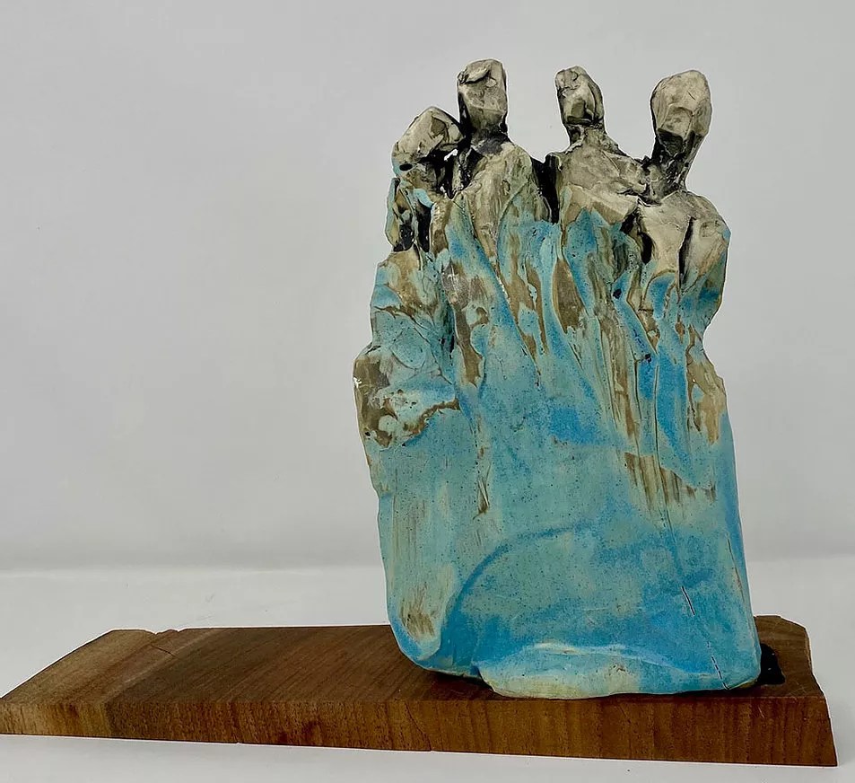 Jim Olspn, a sculptor in wood and stoneware, and Faye Crowe, a kitchen-sink artist who tackles ceramic sculpture, mixed media and oil abstract paintings, share the space at Sync through mid-June.