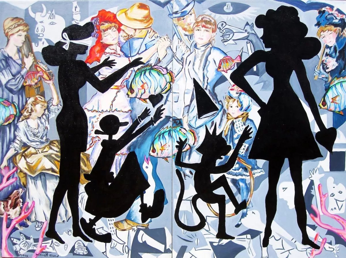 John Fudge, “Bob and Teenage Connie in Tibet,” 1994, acrylic on canvas.