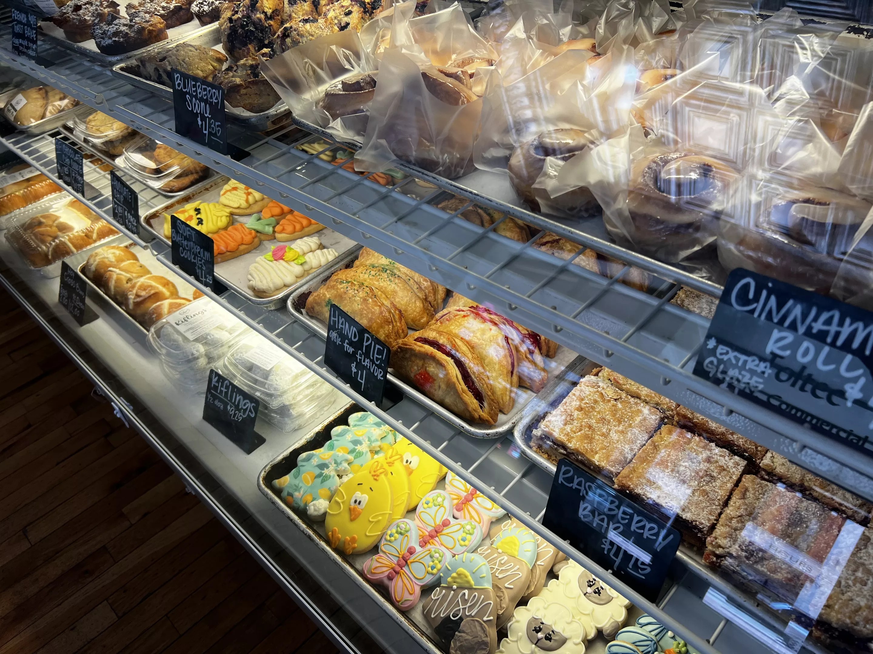Good luck choosing just one tasty treat from Colie’s cases, which are packed with the prettiest cookies and the stickiest pecan rolls (you can even order an extra-sticky), as well as thickly glazed cinnamon rolls, sourdough and challah breads, potato buns, fruit-filled hand pies and cream puffs. Mini carrot cakes and a variety of cupcakes are also usually available, but early birds get the best selection before they sell out.