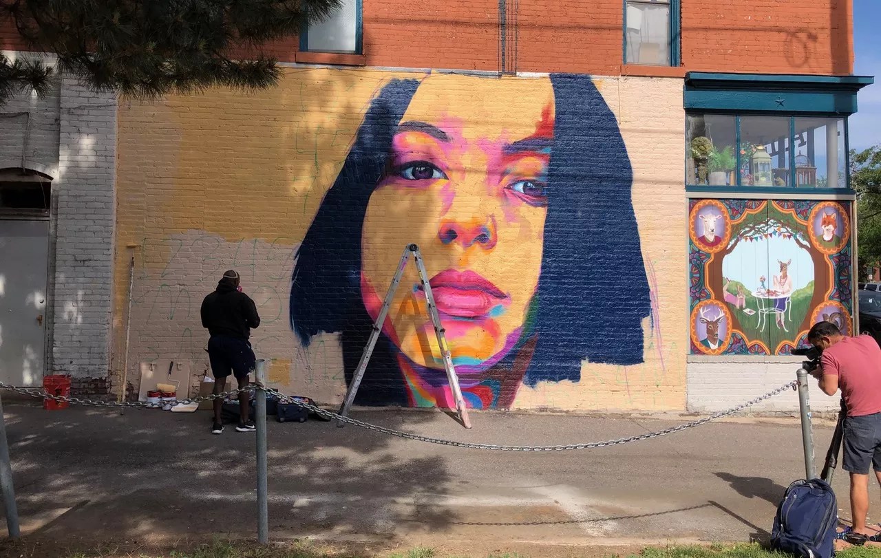 With Hiero Veiga, he’s put murals of George Floyd, Breonna Taylor and Elijah McClain, all victims of police violence, on walls around town, and he’s also painted an Aurora Public Schools teacher on the wall of RedLine Contemporary.
