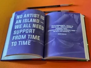I even added reading and resources in the back. So in the couple last pages, I have a ton of resources that are available in terms of podcasts, documentaries, books, blog postings and other sorts of websites and organizations that artists can lean on or go to, to help add value to their practice or find residencies, studios, grants, podcasts that a lot of artists listen to.