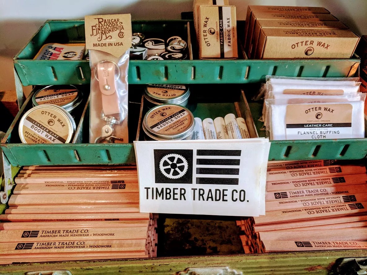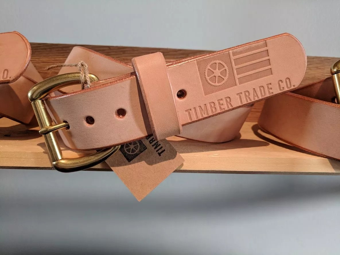 Timber Trade Company parented with a local leather company to create these custom belts featuring the shop’s logo.