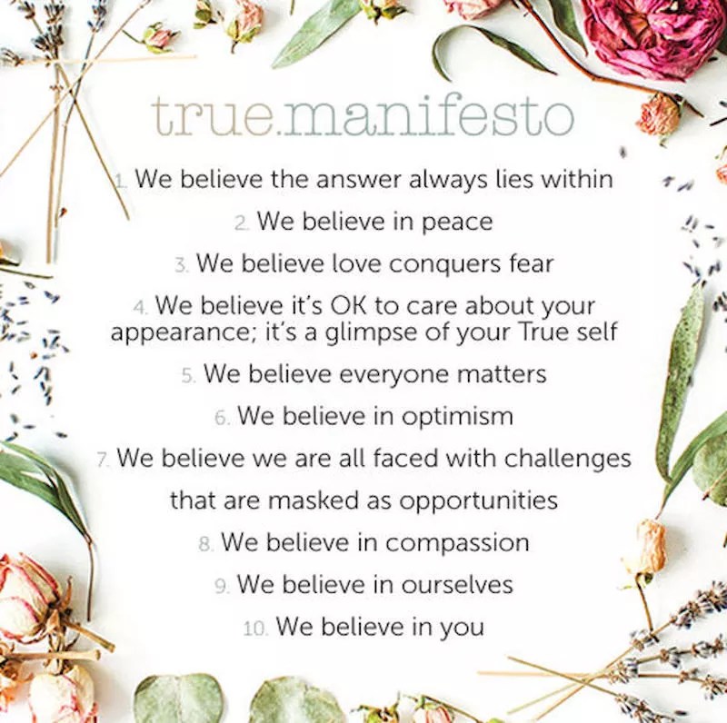 But True also comes with its own manifesto and philosophy: “How do you adorn yourself, not from the outside in, but from the inside out?” Colbin Dunn adds. “Our focus will be on self-care, wellness and personal growth.”