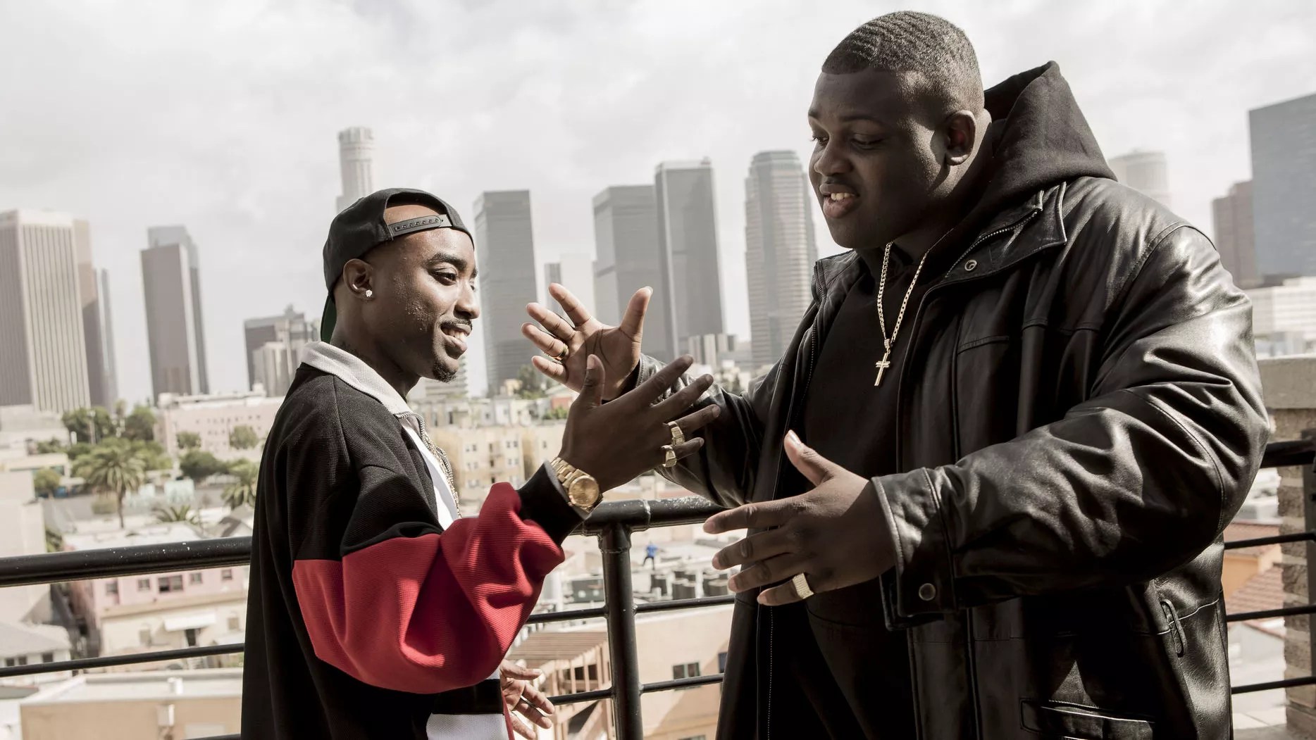 Marcc Rose (left) plays Tupac and Wavyy Jones portrays Biggie in Unsolved: The Murders of Tupac and the Notorious B.I.G., the story of two rappers who eventually became casualties in the