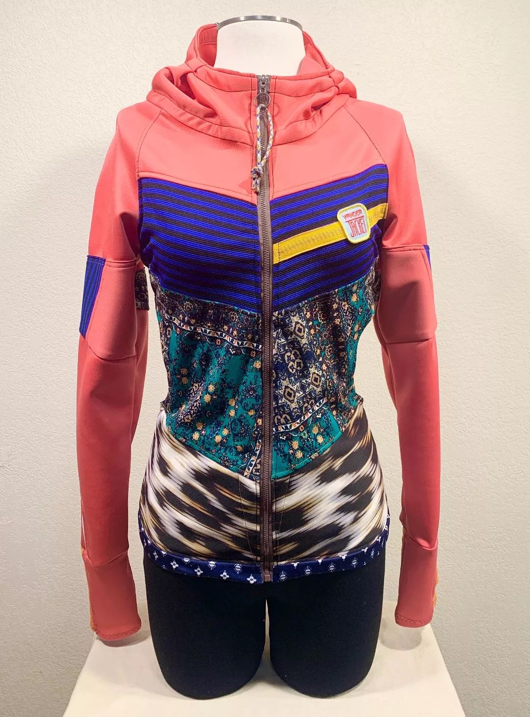 With an eye for mixing colorful prints and cutting a slimming silhouette, Vander Neut started making her own running jackets in 2011, when she was pregnant and couldn’t find a jacket to fit her needs. She utilized the skills she learned from her mother (a sewing teacher with 4-H youth clubs) as well as her brief stint studying fashion design at Baylor University to make the jackets from scrap materials found at thrift stores.