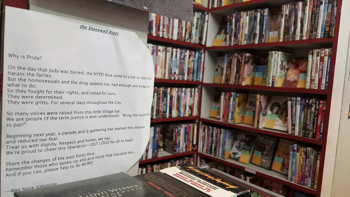 A poem by a longtime customer greets patrons as they enter the store’s vast LGBTQ section.