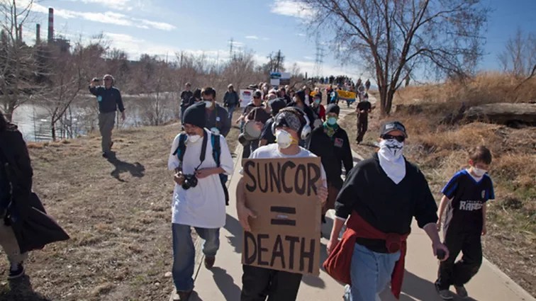 “There’s a lot of people in Denver who don’t know that Suncor exists not that far away and its impacts on the local community, which is a majority BIPOC individuals,” Talbot-Heindl says. “If you don’t know about something, you can’t join the fight against it, right? So, I feel like it’s important to let Denver know that this exists in Commerce City and that there’s like a local population that’s been fighting it for decades and they need help.”
