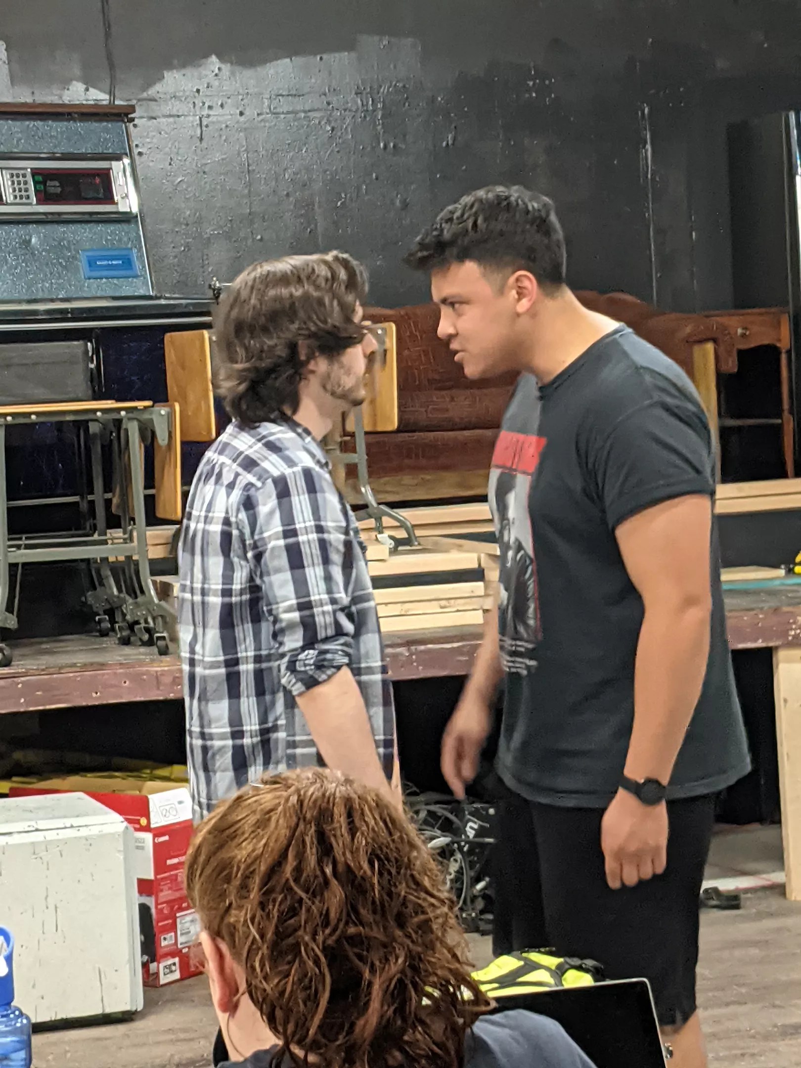 It was important to the creative team that the young men weren’t rendered into cartoonish caricatures. Poling says she worked with the cast on “when the audience gets to see each character’s real self and when we get to see them taking on what they’ve seen from their dad or in movies. It’s been kind of fun to play around with when their machismo comes into play and they put on that energy with each other. We want to make sure that the audience has a chance to connect with each of these young men so that there are times during the play when they are unsure of who to support because they have been on everyone’s side.”