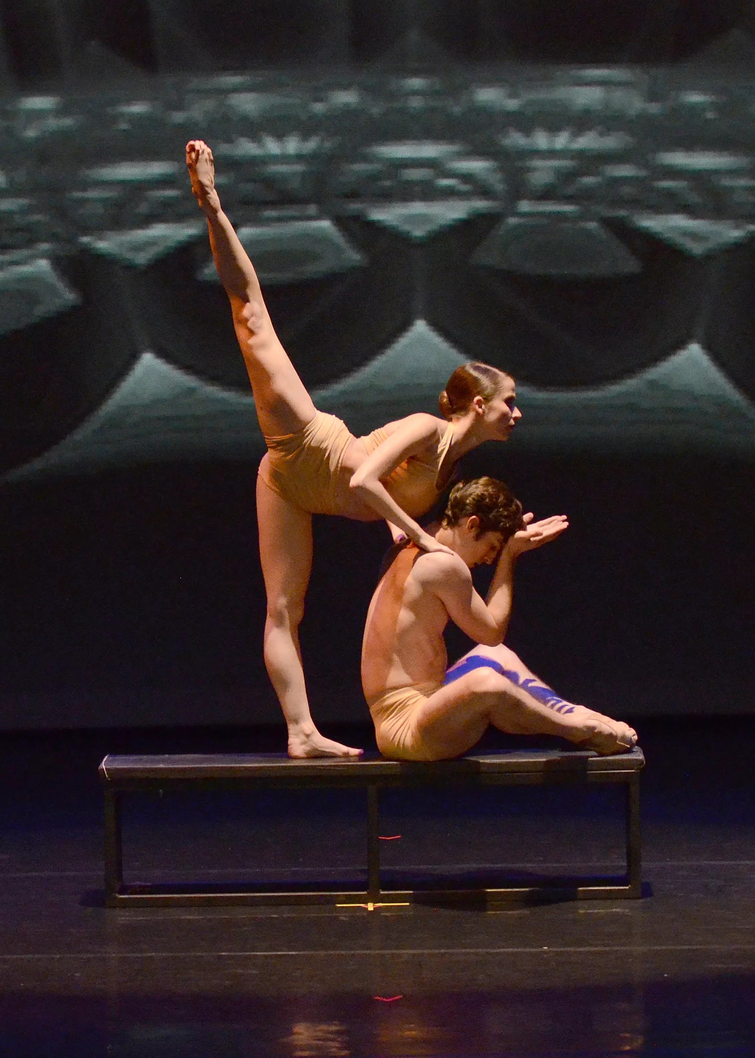 “Travis [Powell] will be developing an animated digital series of visual effects that will complement and be interspersed with slide projections that have been carefully selected for the new work,” Taylor says. “Jeff Rusnak has created some amazing headpieces for Lifting the Veil, along with what can only be described as revolving and tilting slabs, at which five dancers lie at the beginning and end of a work titled ‘Oracle.'”