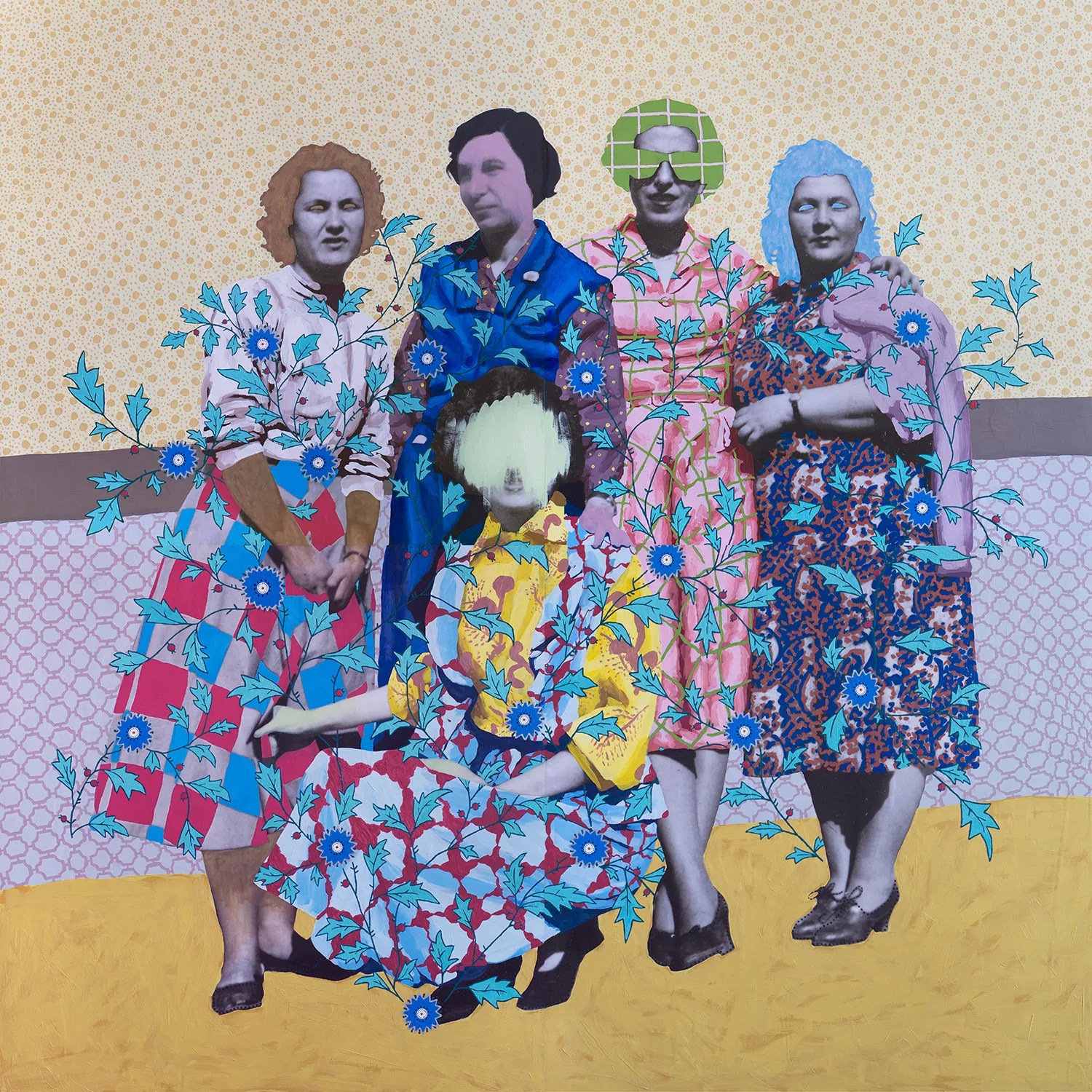 “Untitled (Five Patterned Women),” by Daisy Patton, oil on inkjet print mounted to panel, 2016.