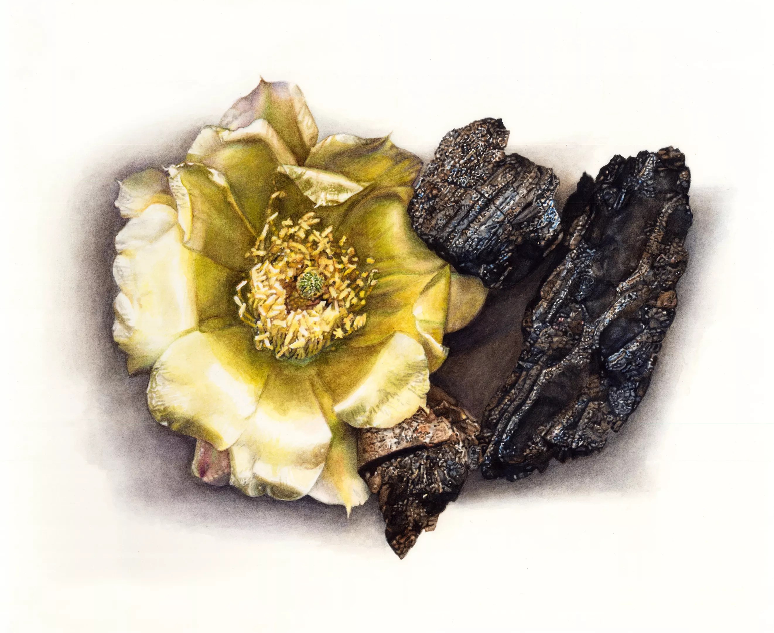 Anna Kaye: Conflict and survival are my creative muses. I am drawn to points in which calamity has occurred, such as a scorched forest, and when hope arises, as plants and animals re-inhabit the forest. This also involves remembering the forgotten, the burn, and revealing hidden, surviving species.