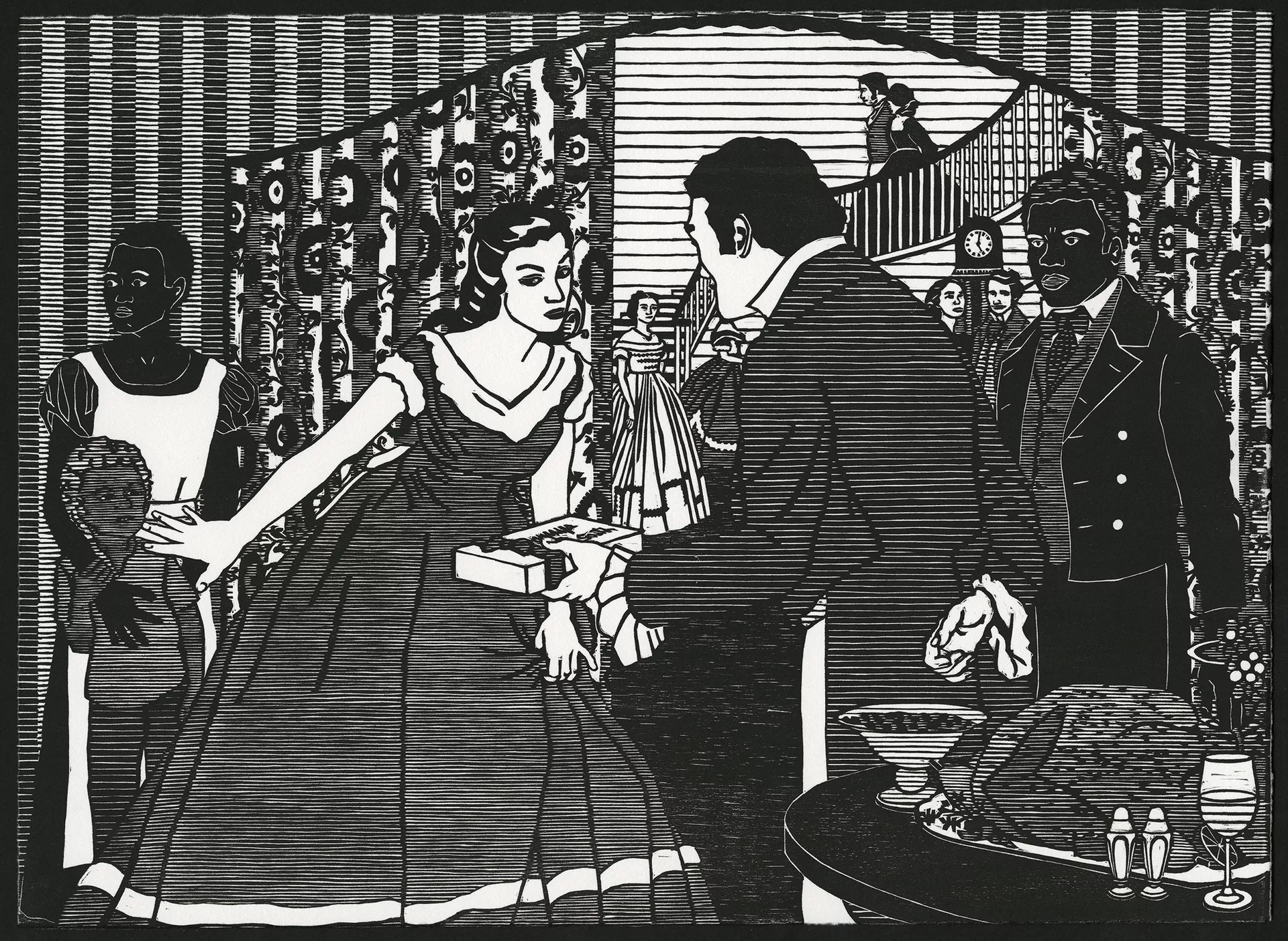 In addition to living within the geographic boundaries, artists submitting to the show had to work in some kind of traditional printmaking technique, including etching, lithography and silk screening, with digital printing specifically proscribed. Despite this prohibition, several of the artists who made the cut apparently tapped into high-tech methods while preparing their images for the actual printing. So even though the show’s requirements focused on traditional printmaking, many of the included pieces are far from traditional.