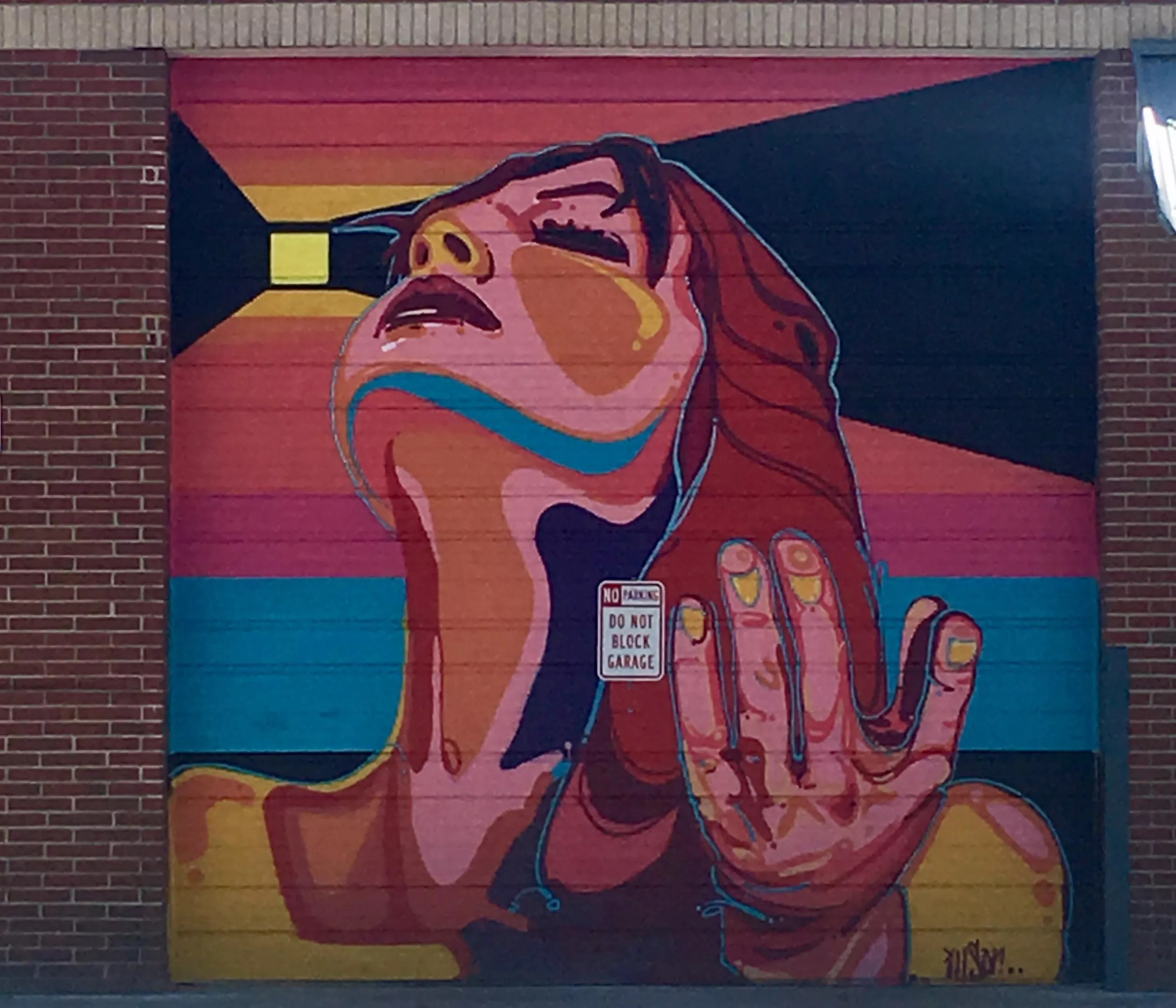 A mural by illson (@illson), aka Michael Ortiz, on a Volunteers of America garage door.