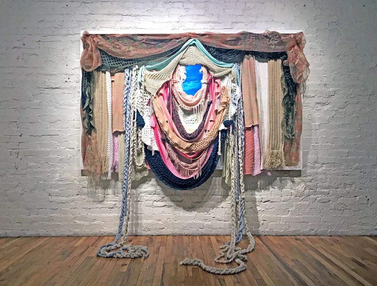 Seeing all this, you have to wonder how she came up with the scarves, prints and needlepoints in these pieces. She says she hunts things down on Etsy and eBay, and typically knows what she wants in advance. Every once in a while, though, she comes across something she wasn’t looking for, and that discovery can inspire a completely new piece, or even a series. Though Mattai also paints and draws in both her installations and smaller works, she relies heavily on these found objects, in particular found imagery; still, she’s managed to establish her own signature using components created by others.