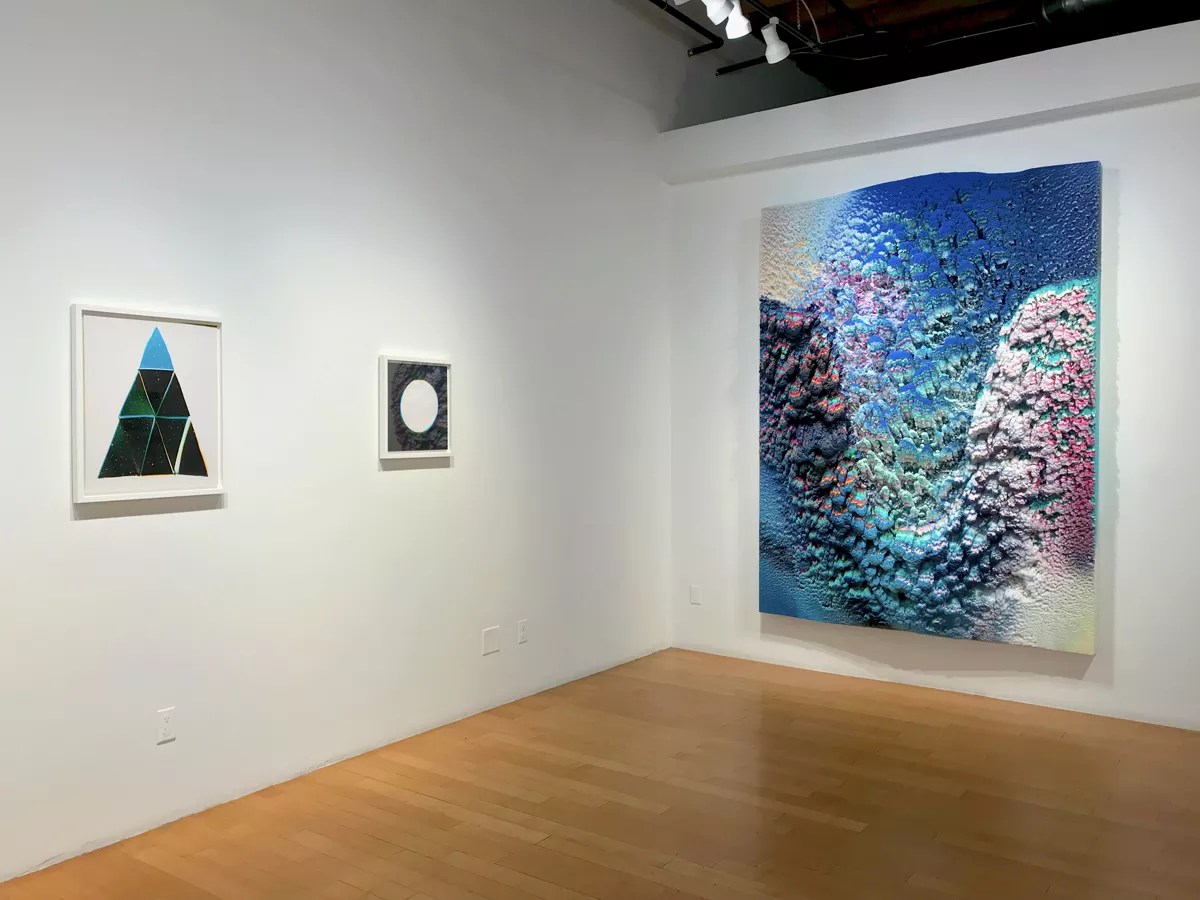 Here he’s represented by a trio of monumental panels, all three covered with wax that’s been applied in innumerable coats using specialized machines. The wax piles up in stalagmites rising off the surface of the panels, and the different colors are revealed in stratified layers. The overall effect is like a contemporary reinterpretation of mid-century abstract expressionism; after all, the works are clearly abstract, and the narrow towers of wax could stand in for expressive brushwork. However, since the most expressive parts of the paintings are done with a power tool and not Gebbia-Richards’s own hands, the traditional understanding of expressionism as deeply personal is turned on its head. The pieces are spectacular, particularly “Above the Clouds,” which has a more complex palette than usual.