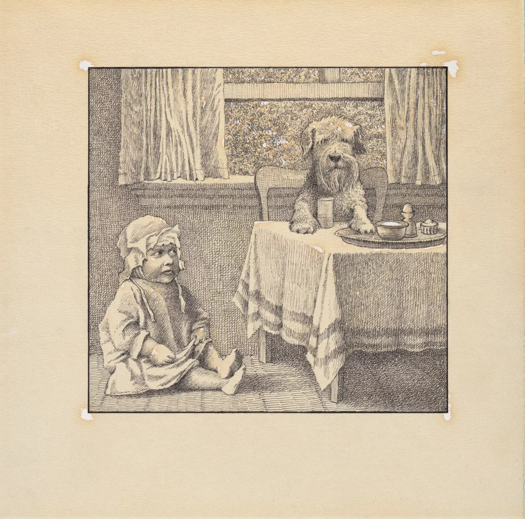 Several walls in the DAM are dedicated to these commissioned illustrations, which took inspiration from the cross-hatch work of Albrecht Dürer and illustrators from various periods. Sendak’s home studio was often covered by a rotation of whatever work was inspiring him at the moment: reproductions of paintings by Winslow Homer, William Blake, Goya; nineteenth-century children’s books illustrated by Randolph Caldecott, George Cruikshank, Ludwig Richter and Wilhelm Busch.