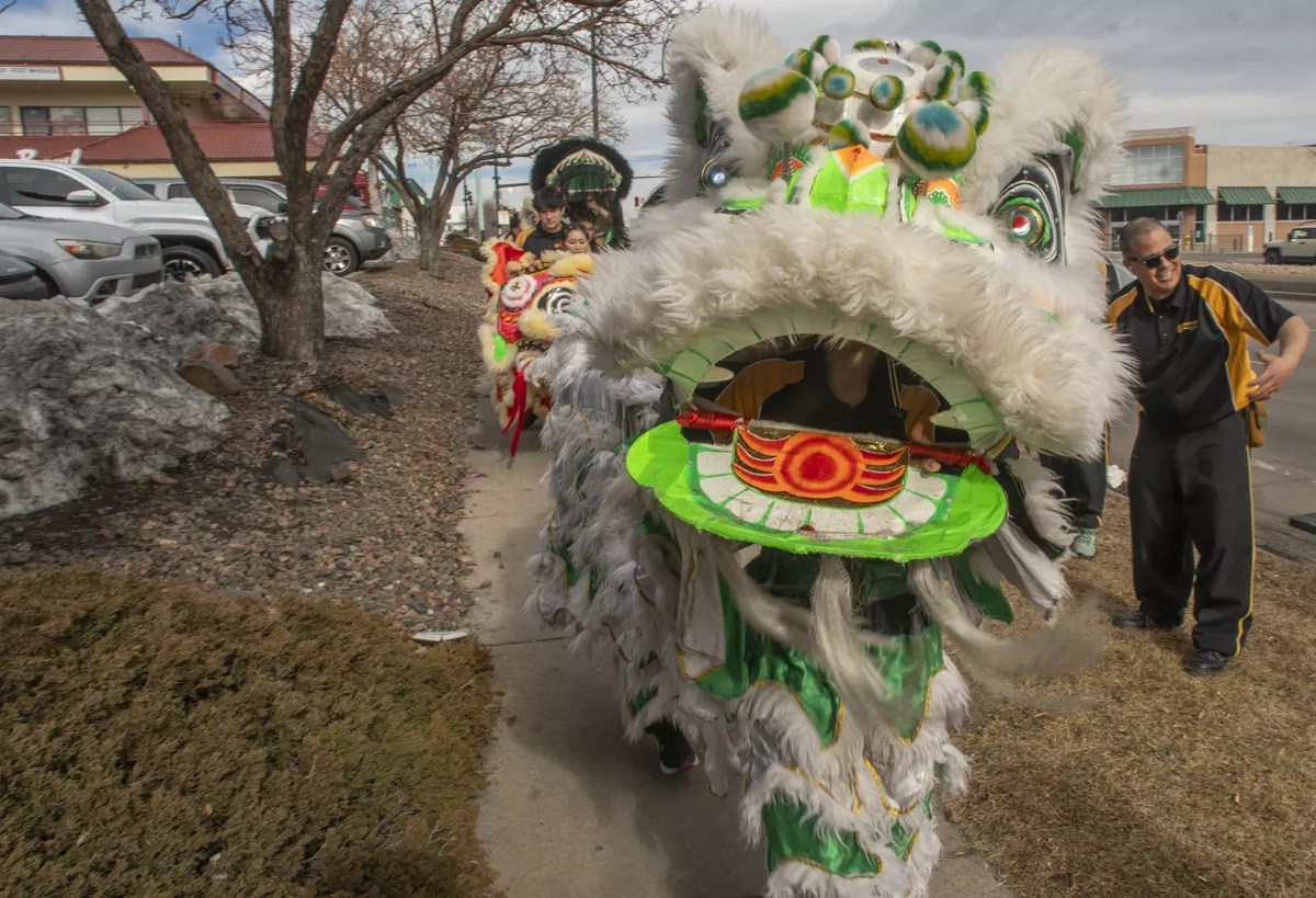 A traditional Chinese lion made its way down South Federal Boulevard.