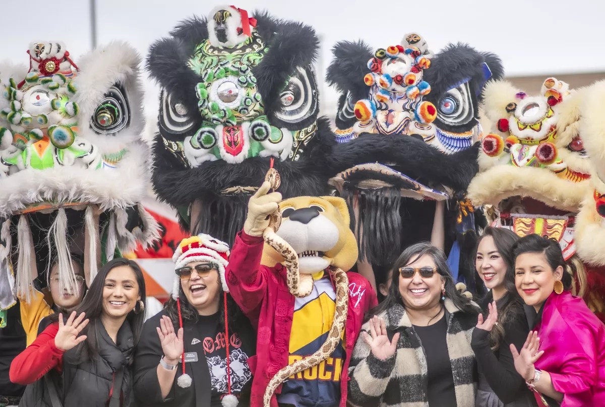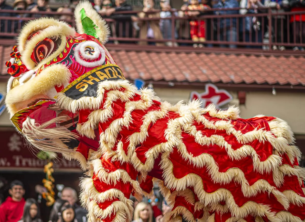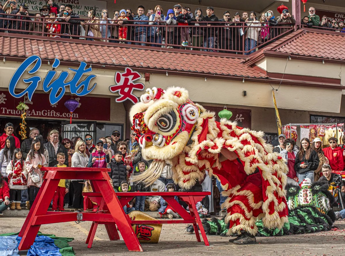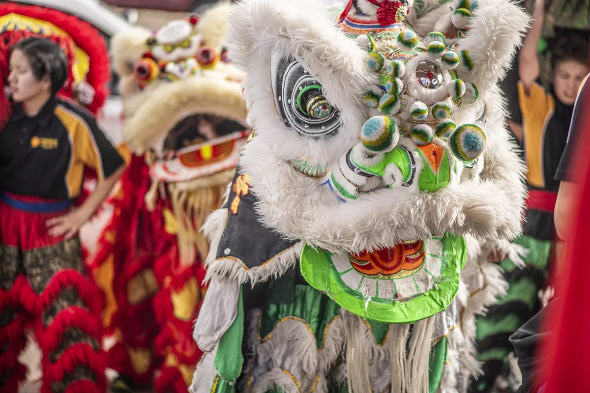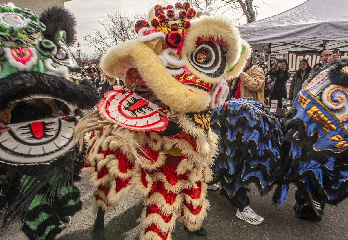Chinese lions provided good luck and guidance for the Year of the Snake celebration.