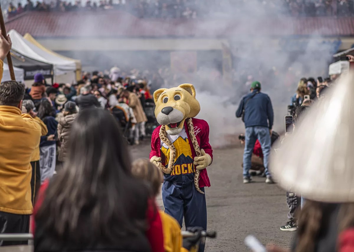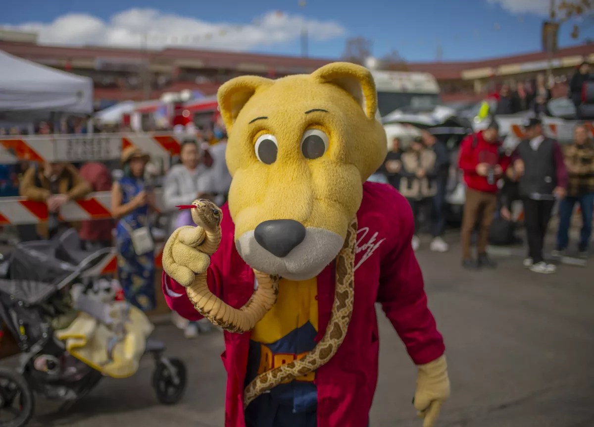 Nuggets Mascot “Rocky” led the parade with a wood snake around his neck.