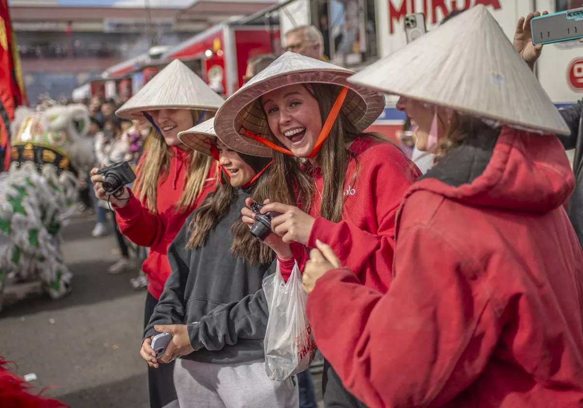 Chinese New Year attendees laughed when attacked by a dancing Chinese lion.