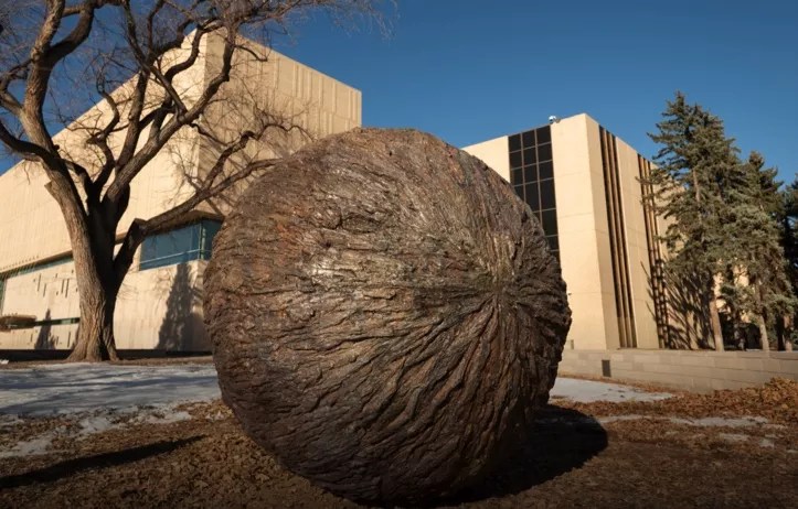 This seven-foot-tall sphere of bronze looks like it’s waiting for an equally large scarab to push it, and as you approach “Rondure” outside the Denver Museum of Nature & Science, you’ll find it makes noise, too. The motion-activated sound features cries of wildlife found in Colorado, an effect for which artist Nikki Pike collaborated with the bARTer Collective. To the work itself, Pike applied a texture reminiscent of tree bark, which gives the sphere a natural effect that complements its sounds from nature.