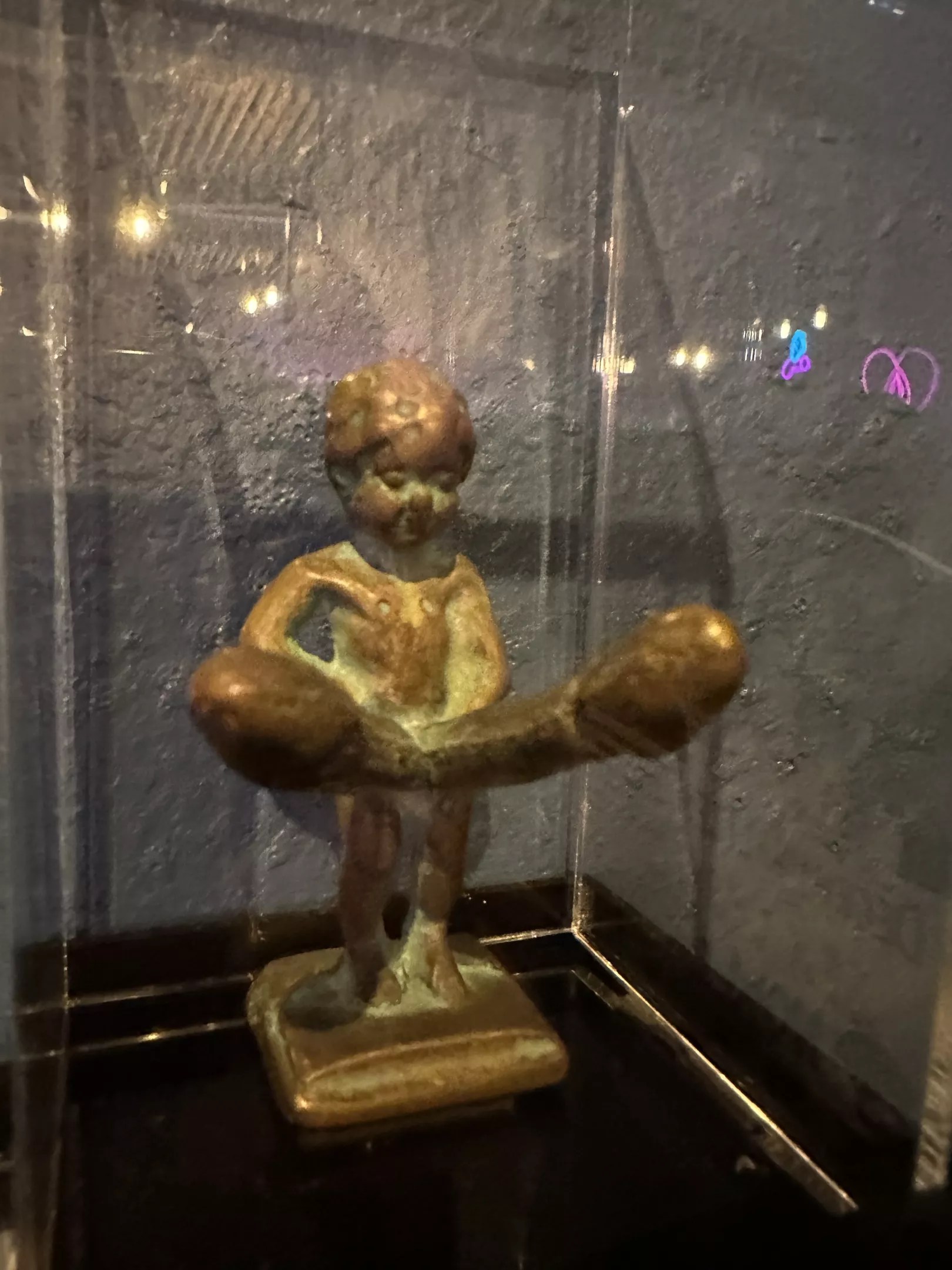 One of O’Breitzman’s favorite display items is a small bronze statue of a cherubic boy with an exaggeratedly huge double penis. “We bought that from a little old man – he was maybe eighty? – just outside of the ruins in Pompeii, Italy. He ran up to us and showed us this little guy, and he yelled ‘THIS FOR GOOD LUCK! GOOD LUCK AND GOOD FUCK!’ and then just started laughing hysterically. So, you know, we had to buy it.”