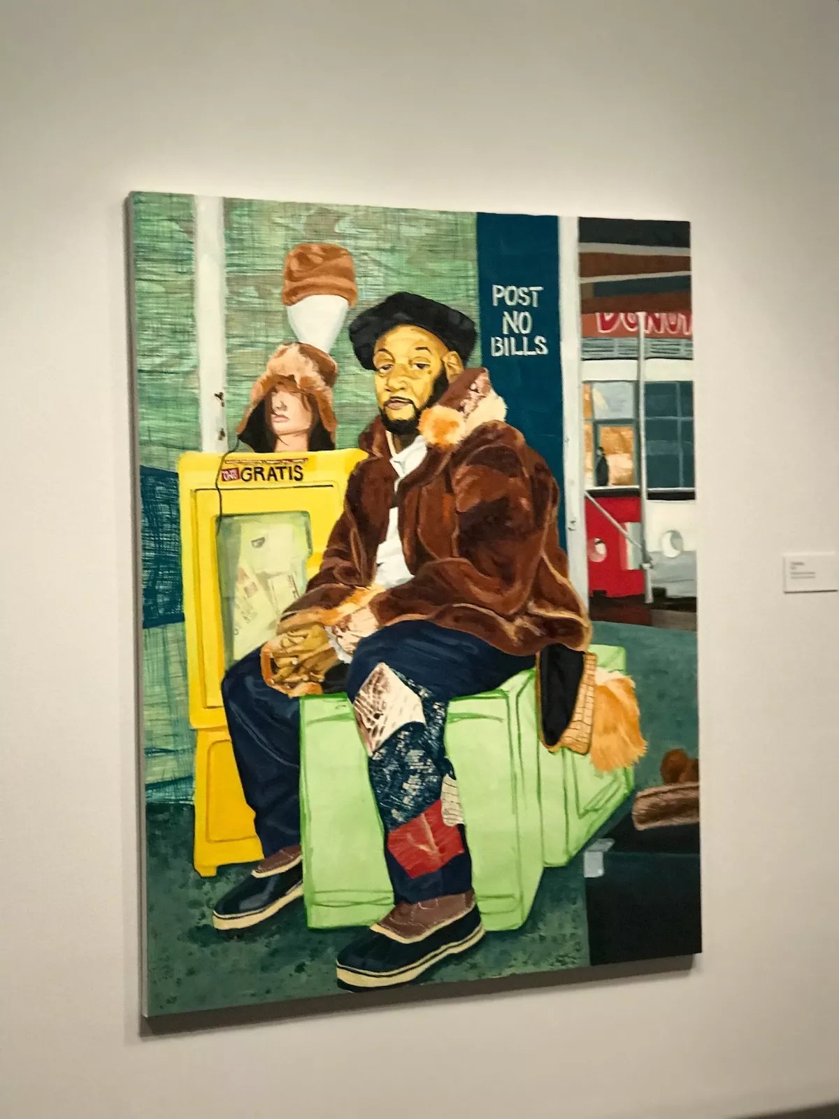 Jordan Casteel, Charles, 2016. Oil on canvas. Casteel says Charles, micro-entrepreneur who sells furs, represents the energy of street.