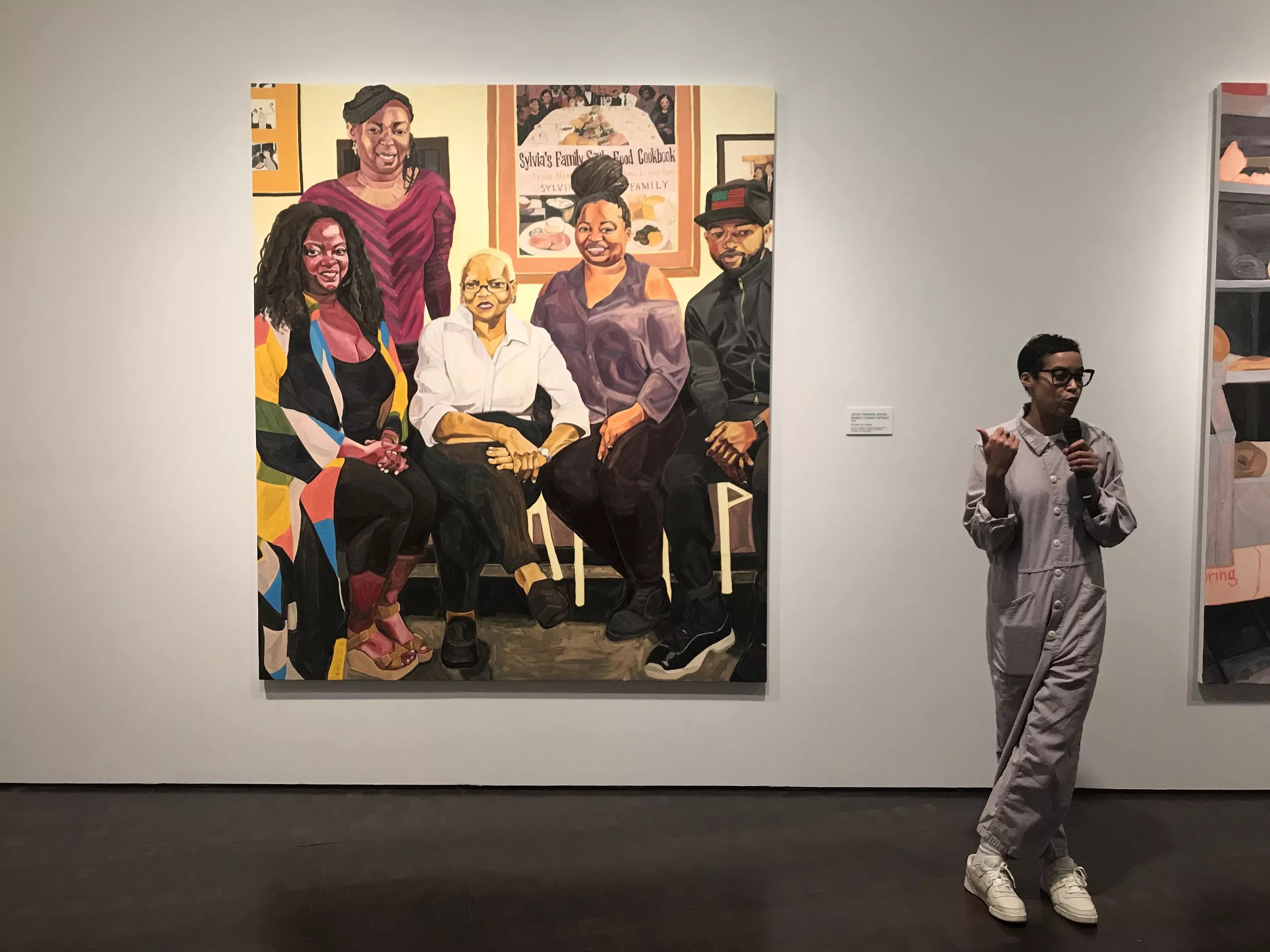 “The female or the essence of woman has never been absent from this work, and in reality, this exhibition will show that: One of the first paintings you see is an early painting of my mom, and there are other women sprinkled through my practice,” she says. “As you move through the newer work, women are also represented. In my work, I recognize my relationship to those I love, and some are men. My own family is saturated with men, and I have a lot of male friends, too.”