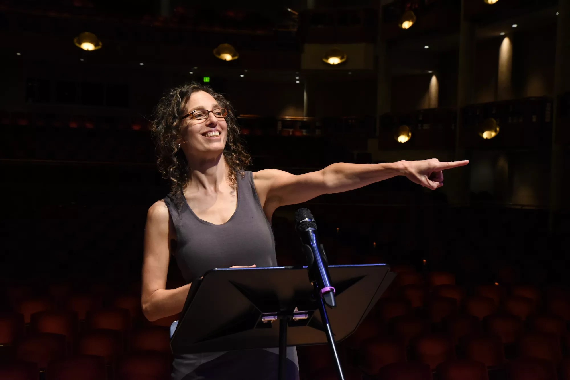 Kirsten Wilson in rehearsal with law enforcment leaders reading stories of undocumented youth, 2017.